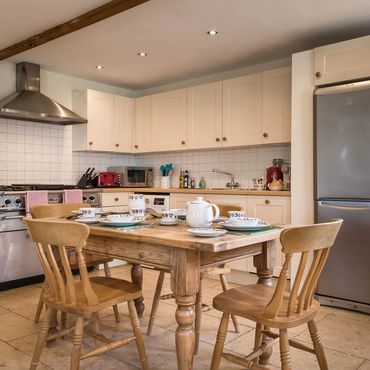 The cottage has an open plan ground floor area. The well equipped kitchen has a Falcon range cooker, a Meile dishwasher, a Bosch washing machine and a Bosch tumble dryer plus an upright fridge /freezer.